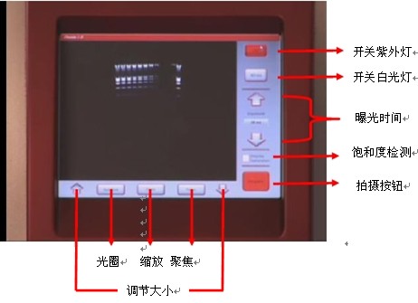 暗箱門具有紫外保護功能,放入樣品,關閉暗箱門,剩下的操作就在觸摸屏上了