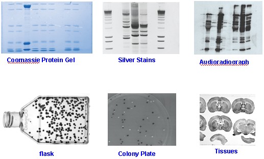 DNA/RNA、蛋白膠自動1D分析、分子量、Rf值、柱形圖、3D柱形圖、定量PCR、W標準曲線、2D斑點密度分析、4到1225孔陣列及雜交分析、自動/手動彩色菌落計數、顯微照片、放射自顯影照片、Slot 雜交分析、TLC培養板及物體距離測量標尺等